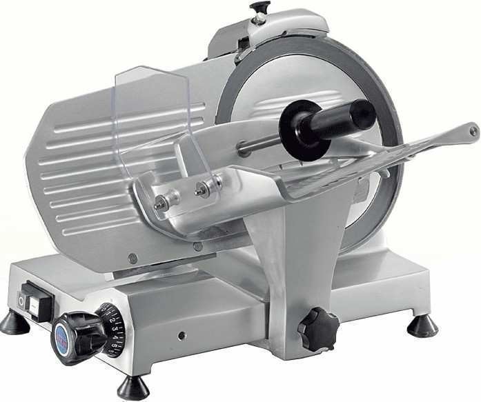 Affettatrice a gravità in alluminio anodizzato, 56x57x48h cm., lama diametro 250 mm.