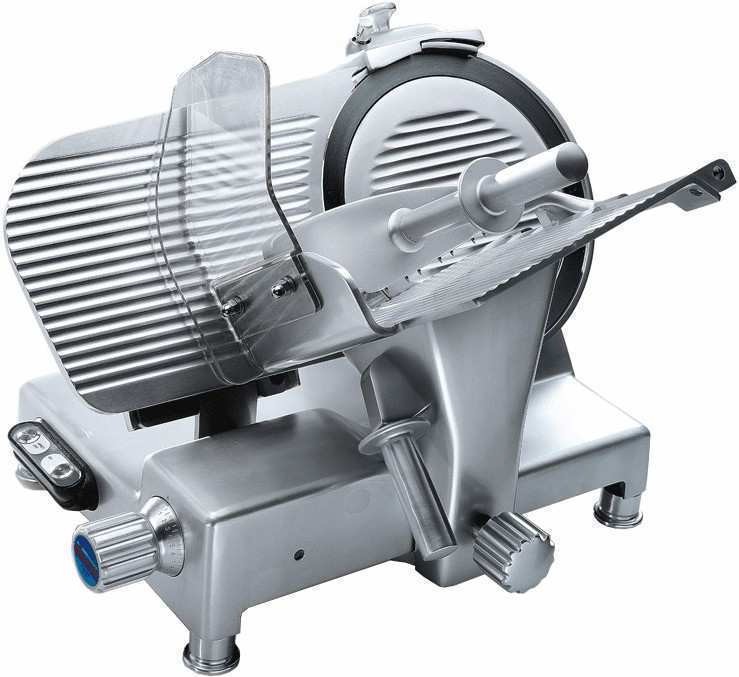 Affettatrice a gravità in alluminio anodizzato, 58x66x53h cm., lama diametro 350 mm.