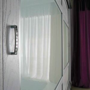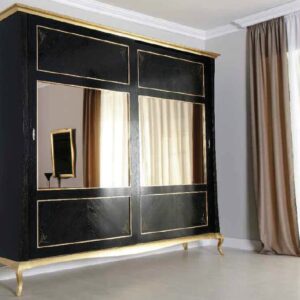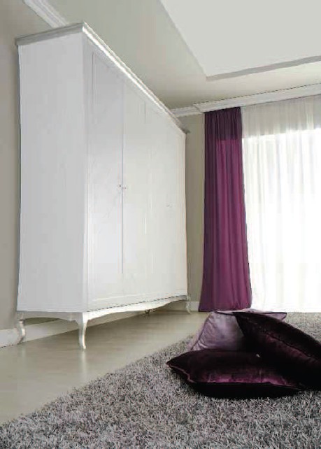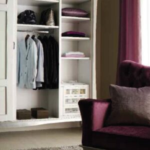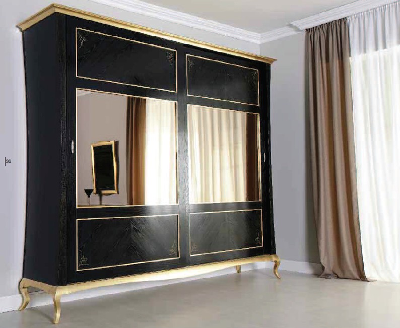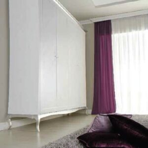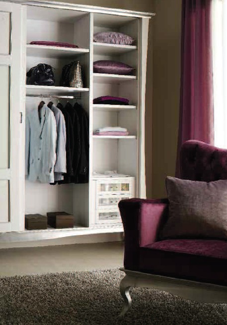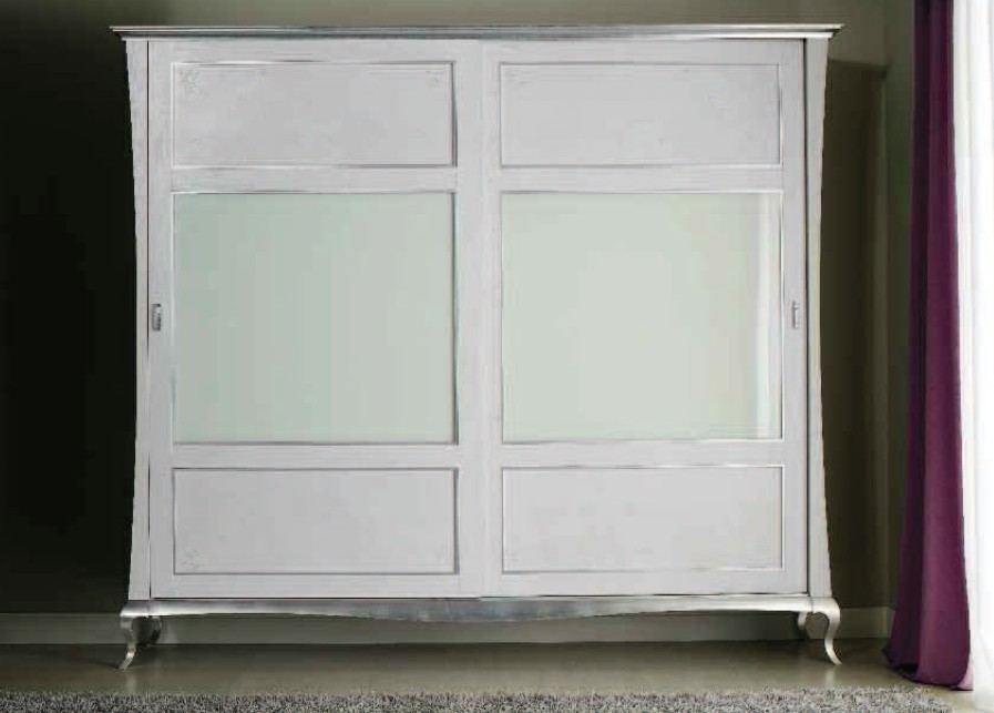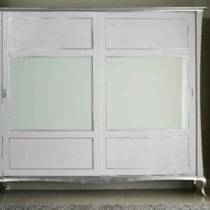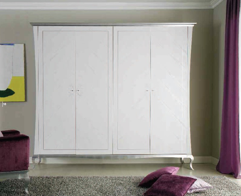 Armadio in Frassino laccato, attrezzatura interna completa di 2 appendiabiti, 8 ripiani, 2 cassettiere con guide ad estrazione parziale. 4 ante battenti o 2 ante scorrevoli
