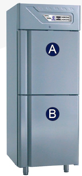Armadio refrigerato GOLD gastronorm GN 2/1, n.2 porte sovrapposte, 350+350 lt., A= -2° / +8°C, B= -10° / -25°C, 72x80x212h cm.
