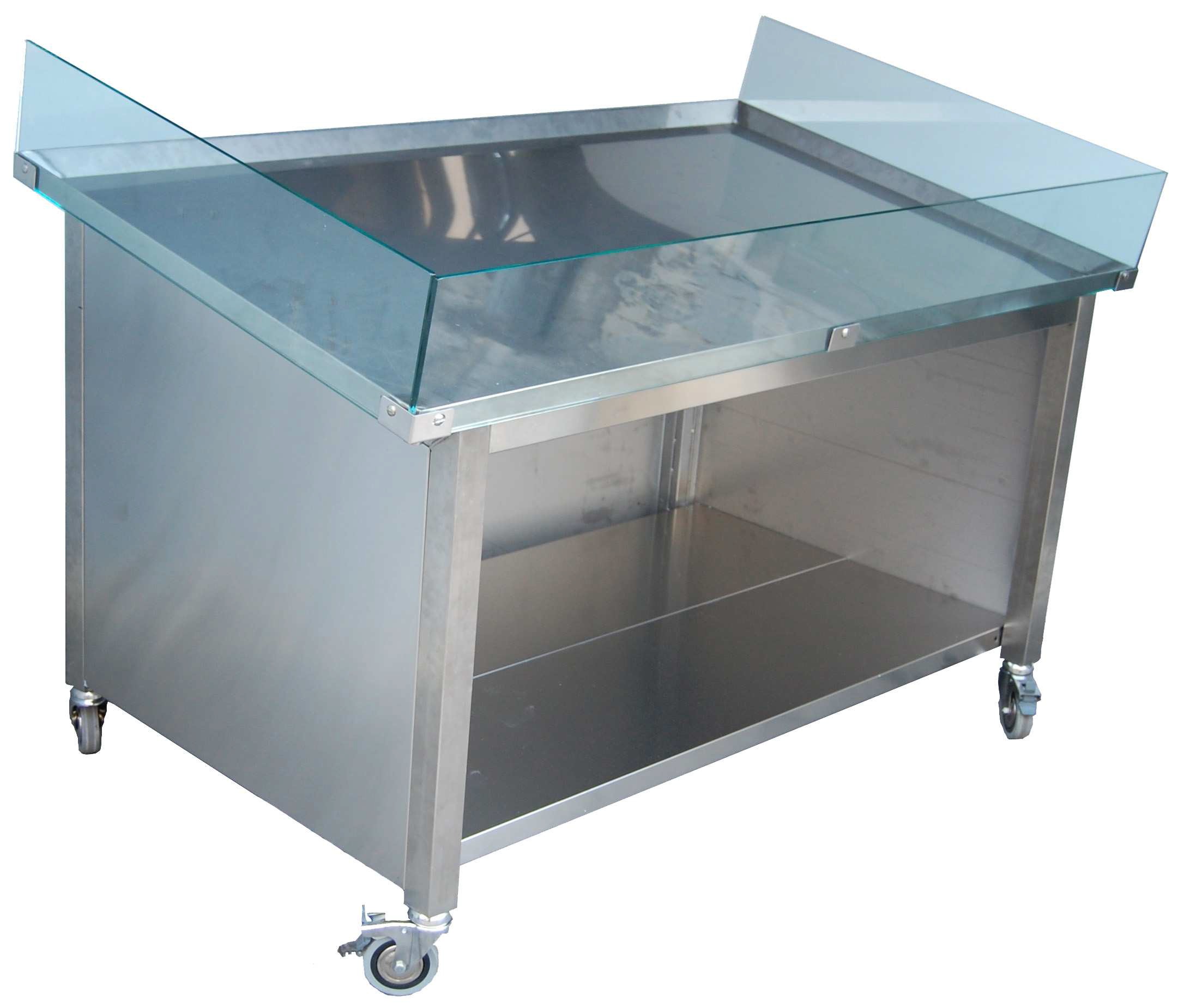 Banco inox 700 su struttura  cm. 225x70x85/100 h  per esposizione pesce