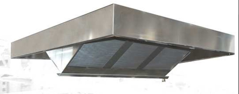 Cappa centrale 240x140x20 in acciaio inox, ecologica perchè dotata di 10 set di 1 filtro a rete inox + 1 filtro acrilico + 1 filtro al carbone attivo