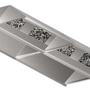 Cappa centrale 168x160x40 in acciaio inox, ecologica perchè dotata di 6 set di 1 filtro a rete inox + 1 filtro acrilico + 1 filtro al carbone attivo