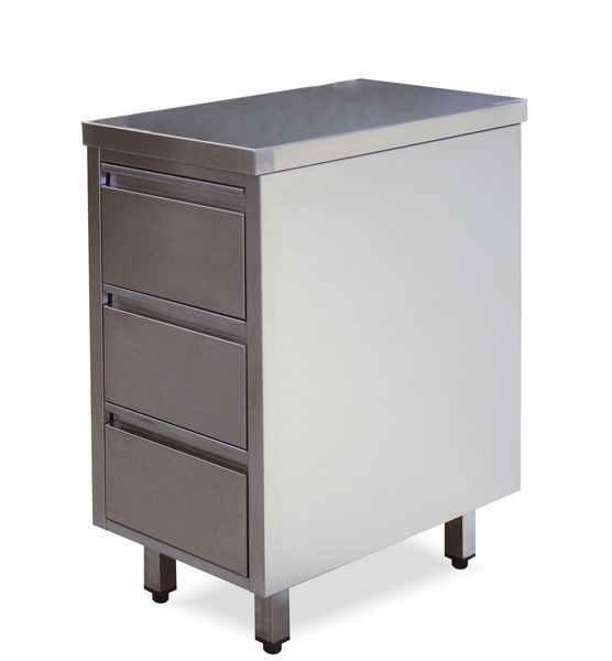 Cassettiera inox cm 40x70x85 con n. 3 cassetti 30,5x52x14, piano senza alzatina .