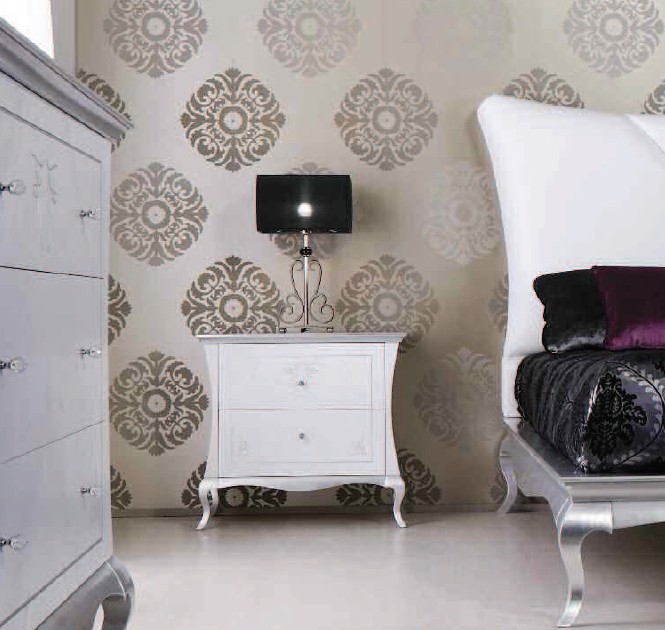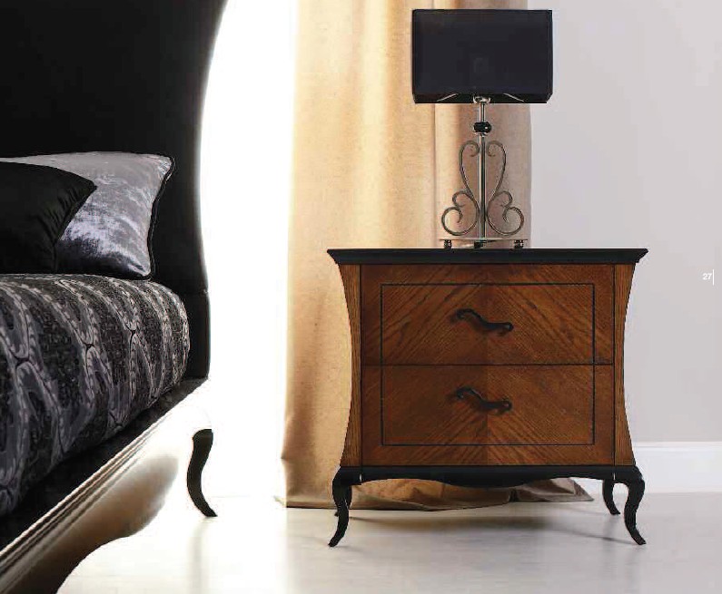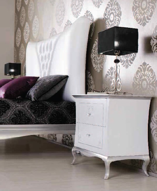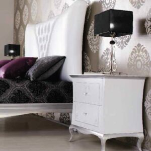 Comodino PANAREA, piano in legno, 2 cassetti con guide ad estrazione totale con rientro controllato e pomoli in Swarovski