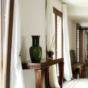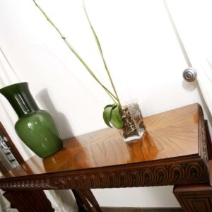 Consolle Decò finitura Noce con piano in legno e fascia intagliata in Frassino maculato finitura argento anticato