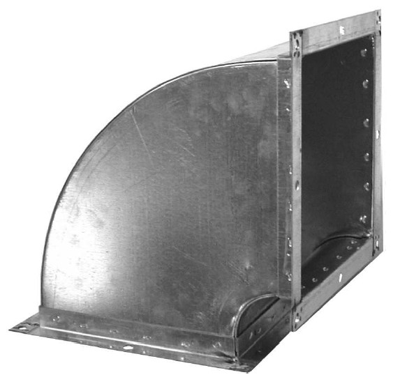 Curva di raccordo a 90° flangiate 15x15x25 cm., acciaio zincato