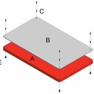 B: UN RICAMBIO DI POLIETILENE DI SPESSORE 3 MM;