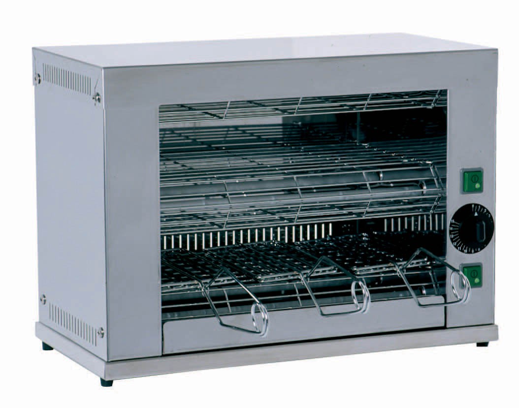 Fornetto inox elettrico per toast, 49x25x37h cm., 2 zone cottura, superfice utile 35×24 cm., ideale per riscaldare toast, pizze e cibi precotti