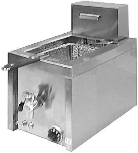 Friggitrici inox elettriche 4000 da banco serie Midi, 28x45x30, 1 vasca, con scarico, kw 4,000 v 400/1n 50 Hz, 6 litri, cestello cm 16x29x10, corredate di termostati di sicurezza