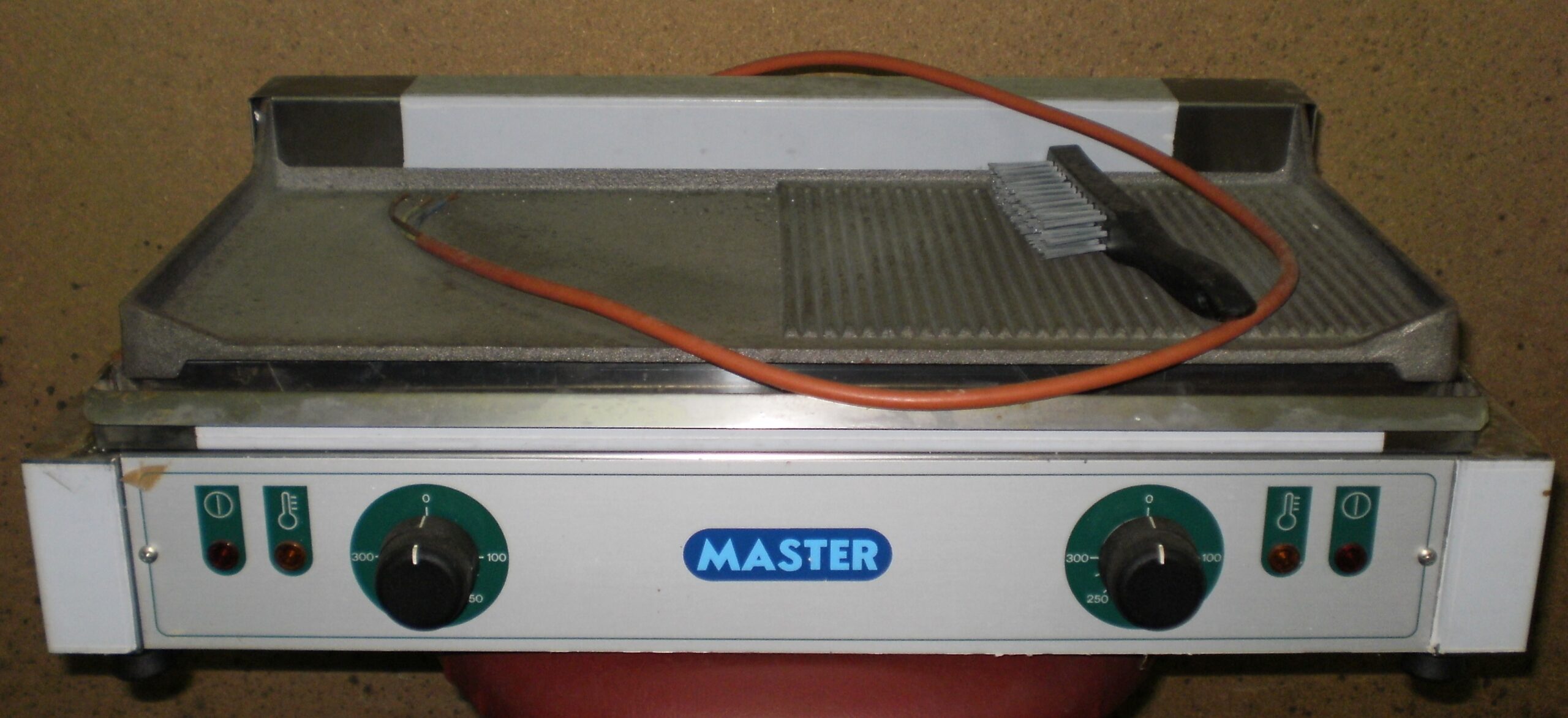 Fry-top inox elettrico, piastra 1/2 liscia e 1/2 rigata, 62x33x20 cm.