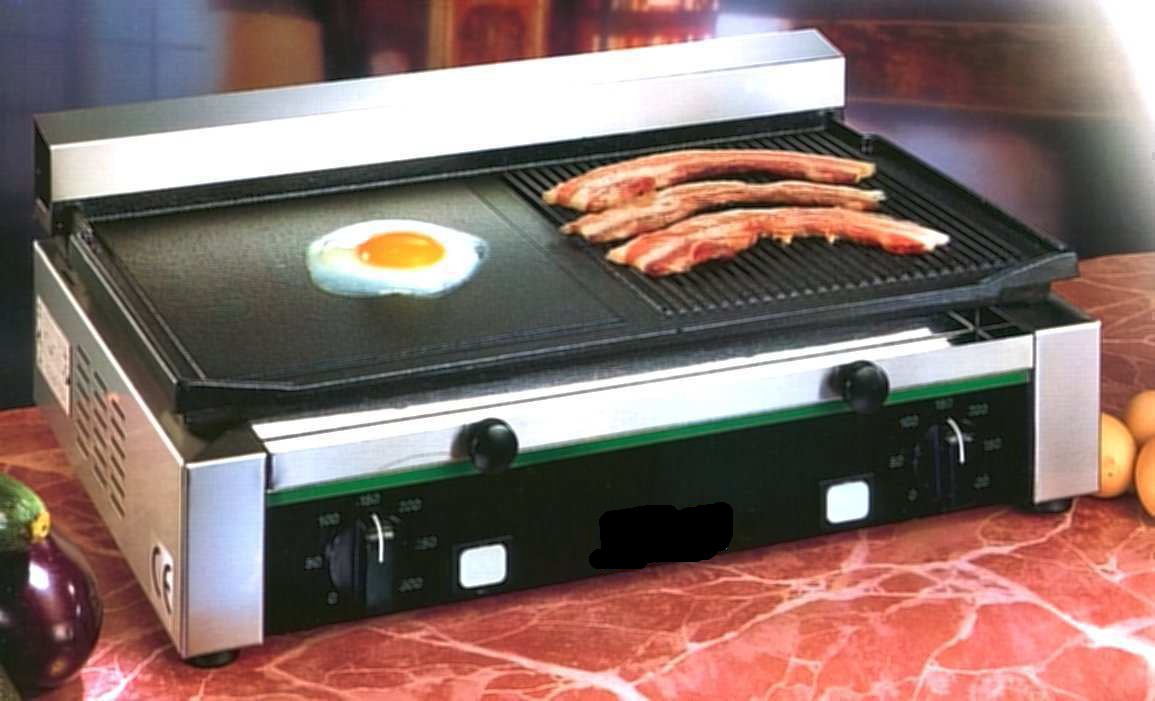 Fry-top inox elettrico, 52x44x17h cm., piastra 1/2 liscia e 1/2 rigata o liscia o rigata