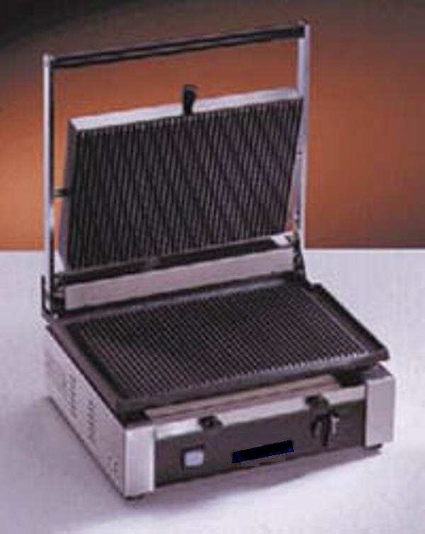 Grill-toast inox elettrico, 38x44x24h cm., piastra liscia o rigata