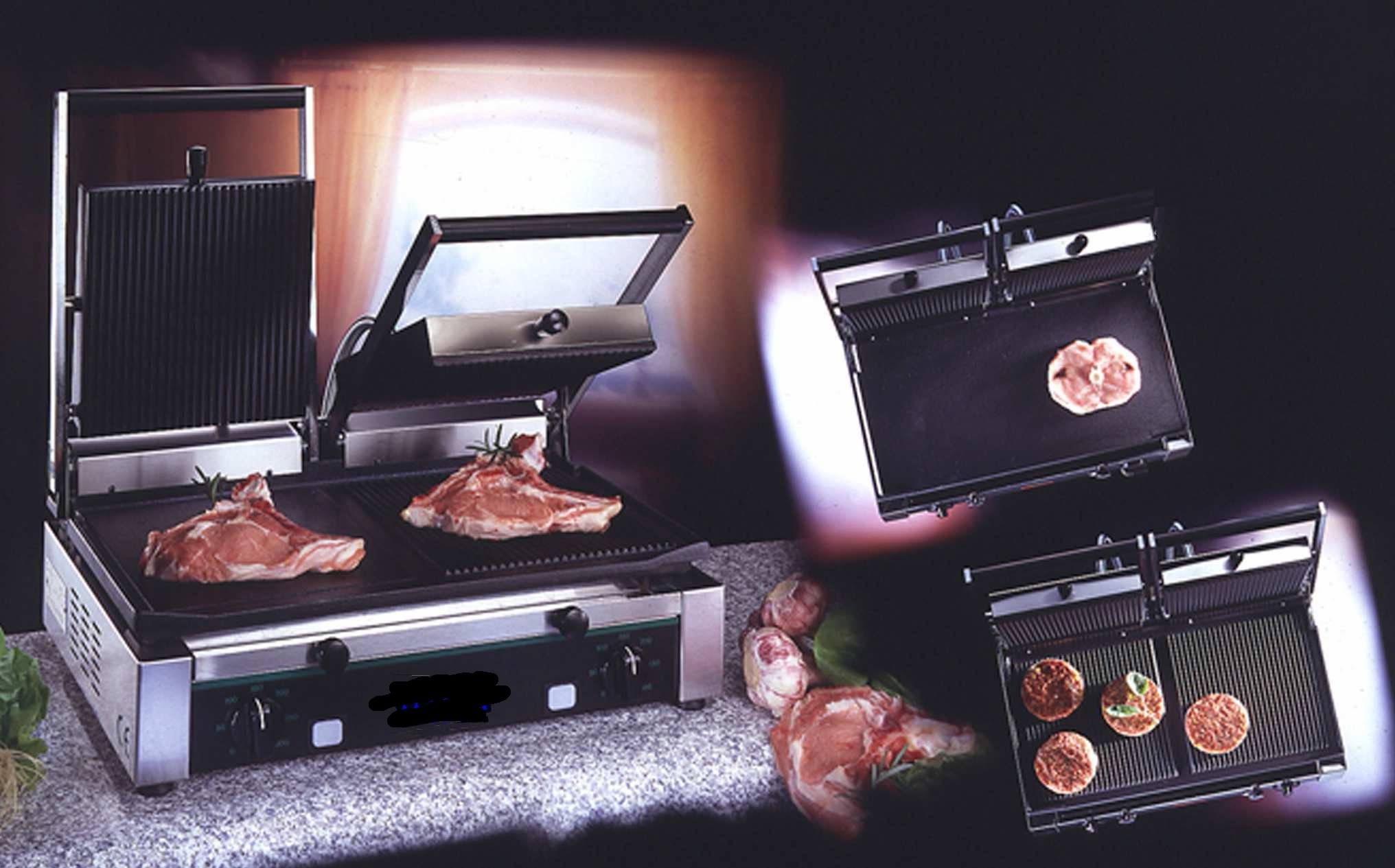Grill-toast inox elettrico, 52x44x24h cm., piastra liscia o rigata o 1/2 liscia e 1/2 rigata