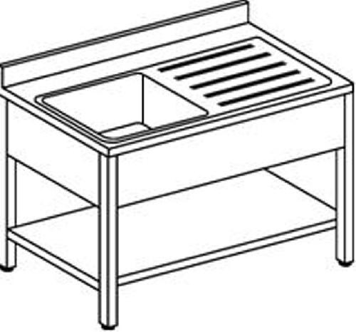 Lavello inox 120x60x85 h su banco con 1 vasca con gocciolatoio