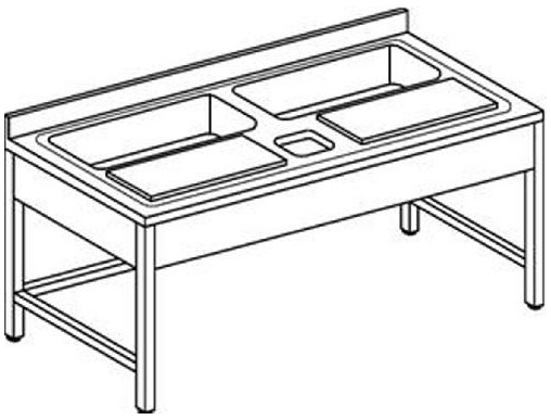 Lavello inox su gambe con traverse con 2 taglieri e foro di scarico