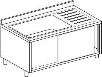 Lavello inox 180x70x85 h su armadio con 1 vasca con gocciolatoio