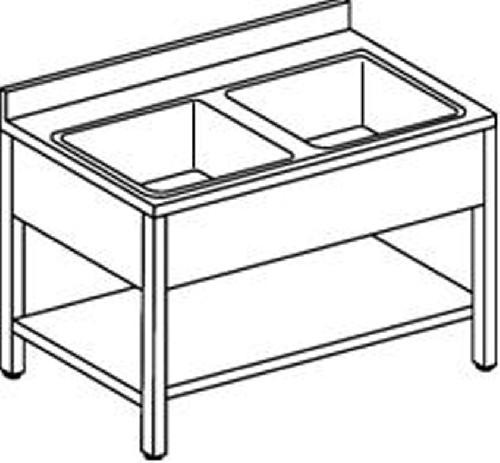 Lavello inox 120x70x85 h su banco con 2 vasche