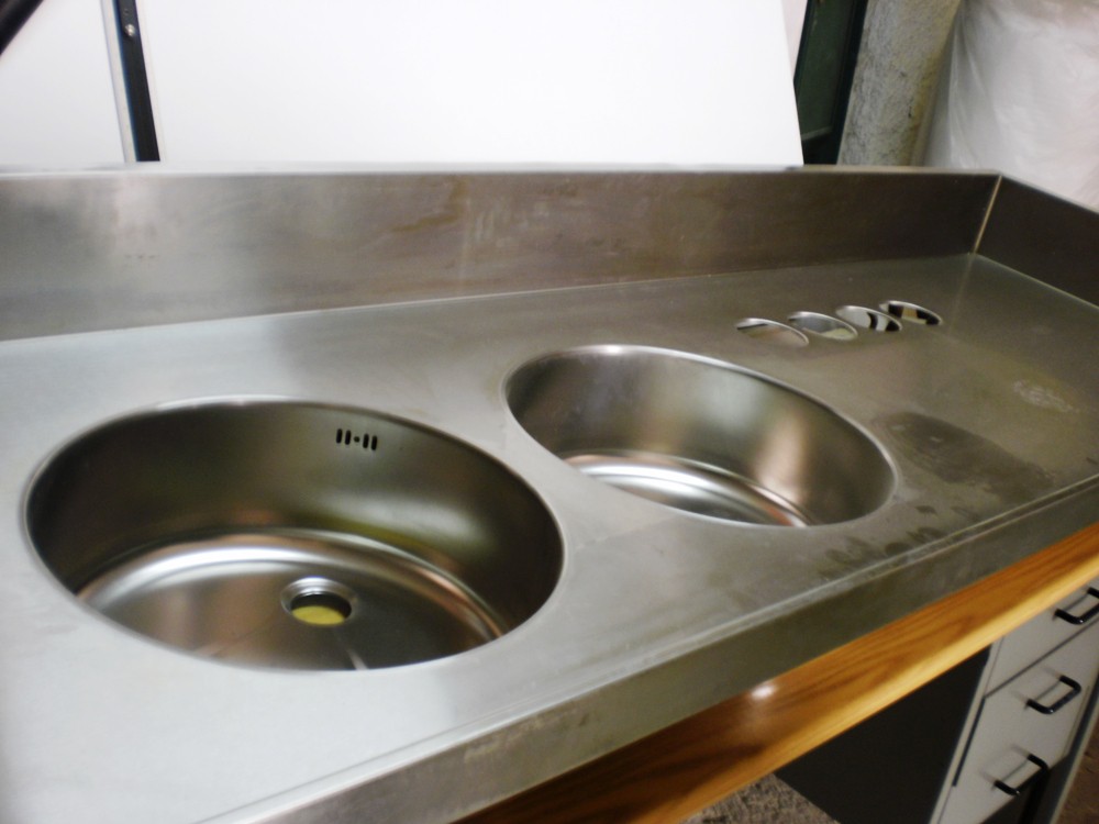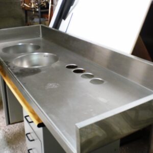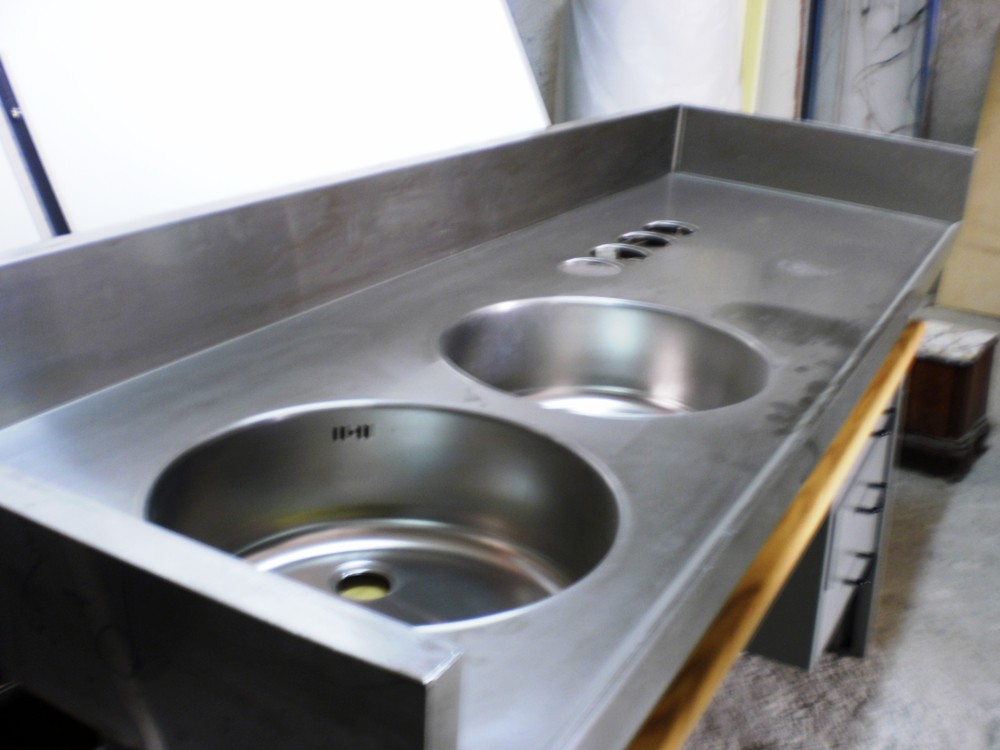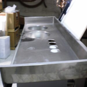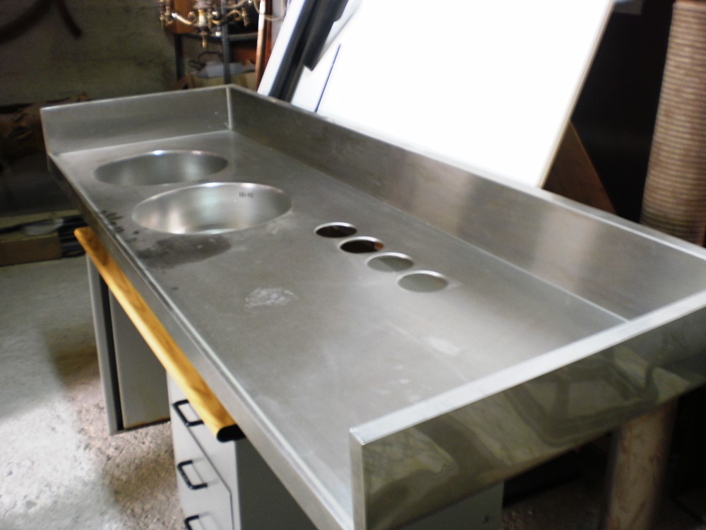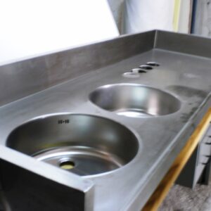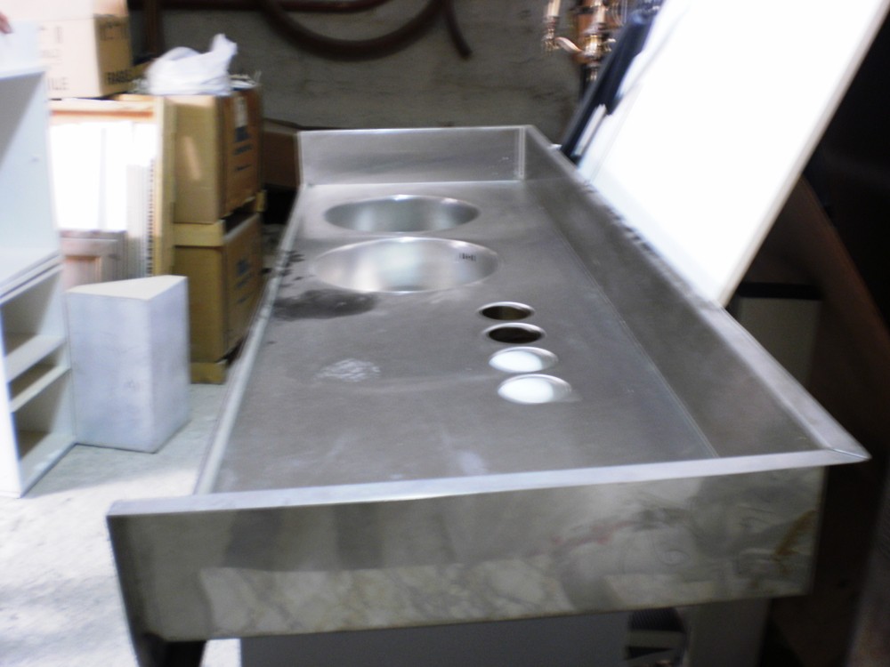 Piano per banco bar con alzatina, 2 lavelli, 4 fori canotto portabottiglia