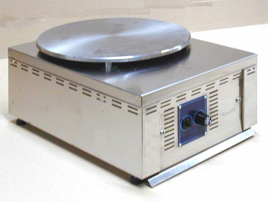 Piastra per crepes inox elettrica, 38x49x20h cm., n.1 piastra in acciaio diametro 38 cm.