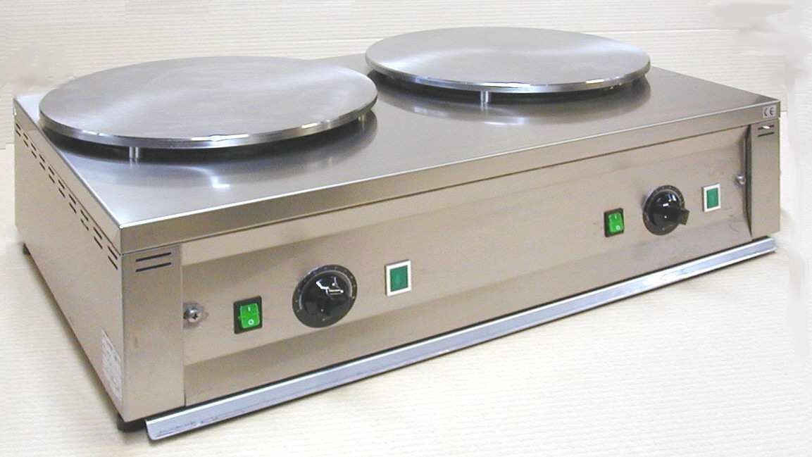 Piastra per crepes inox elettrica, 80x49x20h cm., n.2 piastra in acciaio diametro 38 cm.