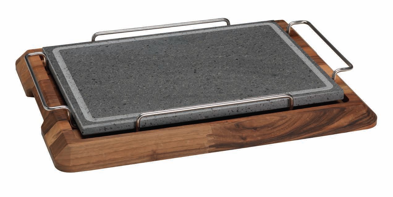 Pietra con portapietra in noce e filo inox, 40x35x3,2 cm.