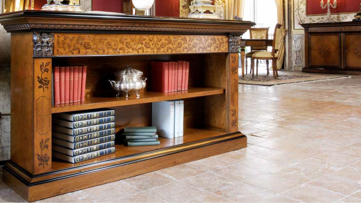 LASTRONATO DI CILIEGIO CON INTARSI IN NOCE ED INTAGLI ANTICATI