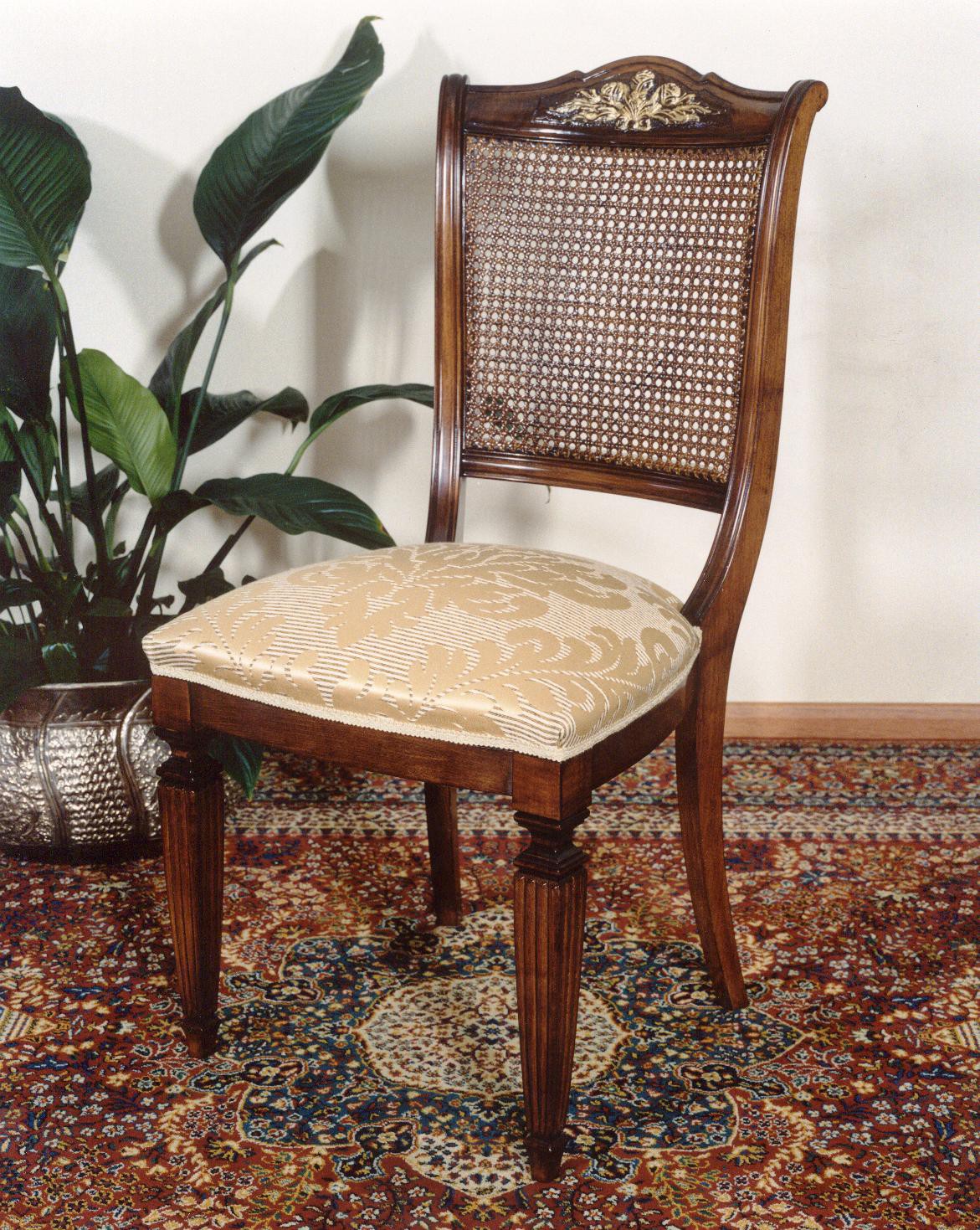 Sedia con schienale in paglia di Vienna e seduta imbottita rivestita in tessuto (come foto)