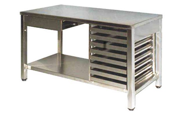 Struttura cm 35x66x62 porta teglie e porta bacinelle inox per tavoli da lavoro.