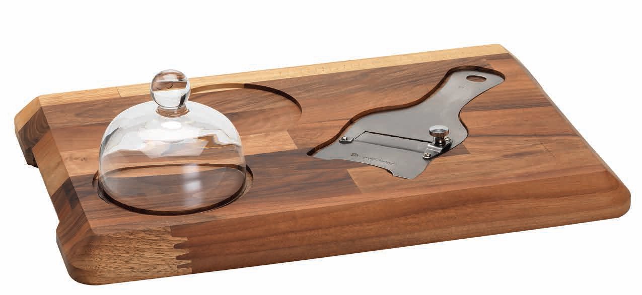 Tagliere taglia tartufi in Noce lamellare verniciato completo di coltello e campana, 45x35x3,2