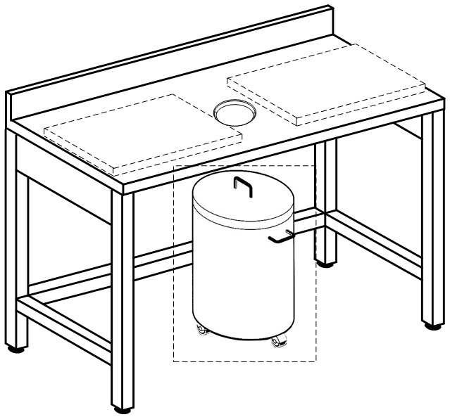 Il piano da lavoro e le traverse sono realizzati in acciaio inox AISI 304 18/10 spessore 1MM
