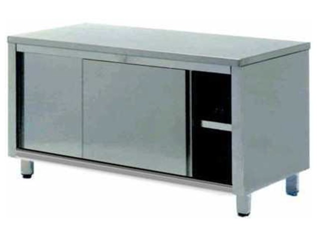Tavolo armadio inox centrale con sportelli scorrevoli DOPPIO FRONTE 220x70x85.