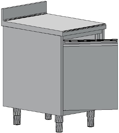 Il piano da lavoro è realizzato in acciaio inox AISI 304 18/10 spessore 1 MM. con alzatina posteriore da 10 CM.