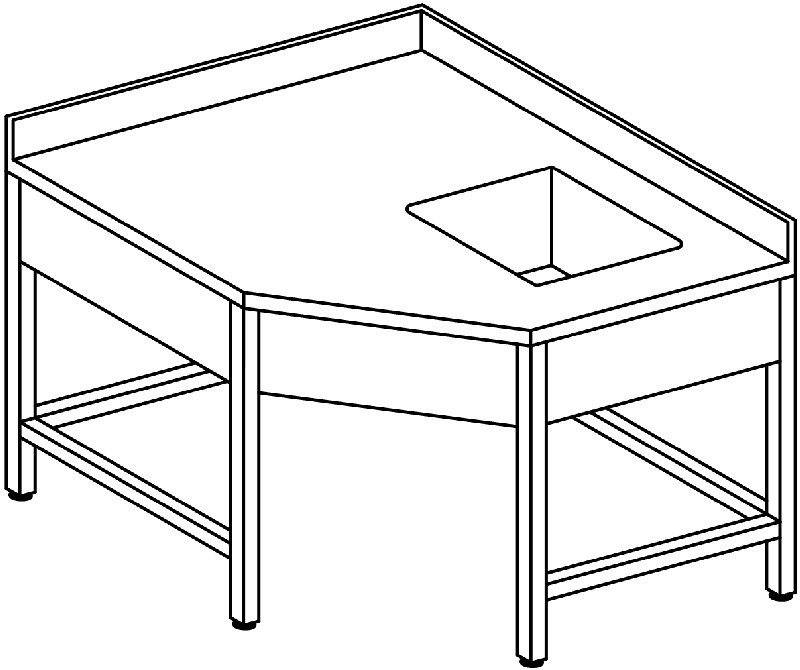 Tavolo inox 700 angolare su gambe con traverse profondità 70×110 dimensione 110×70/110×85 h, 1 vasca