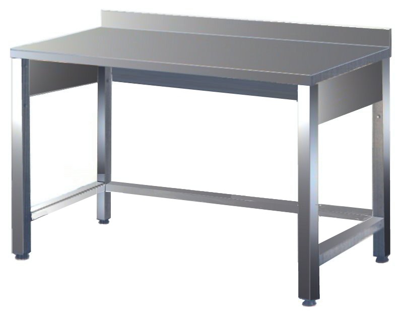 Il piano da lavoro e le traverse sono realizzati in acciaio inox AISI 304 18/10 spessore 1MM con alzatina posteriore da 10 CM.
