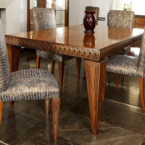 TAVOLO RETTANGOLARE DECO’ CON FASCIA INTAGLIATA FINITURA NOCE O MOKA